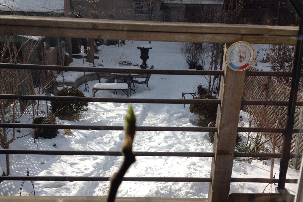 I’m Canadian so I can rant on about the weather. Freezing, solid cold. Just about unbearable. Glad I didn’t fret about wrapping the figs this year. Would have been a total waste of time. Have to admit I’ve been negligent not getting to the snow on the boxwoods. In part as they are frozen together.
