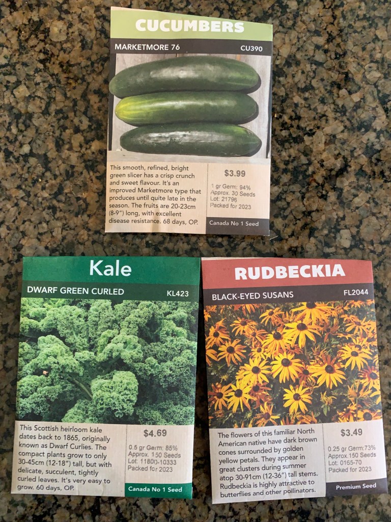 Started first seeds on March 19. Cabbage, basil, sesame, peppers and tomatoes of course (Premio, yellow pear, and big beef). As they say, “see above”. And started cucumber (marketmore), kale, calendula, cannabis, black-eyed Susan’s – for Ken and other pollinators.