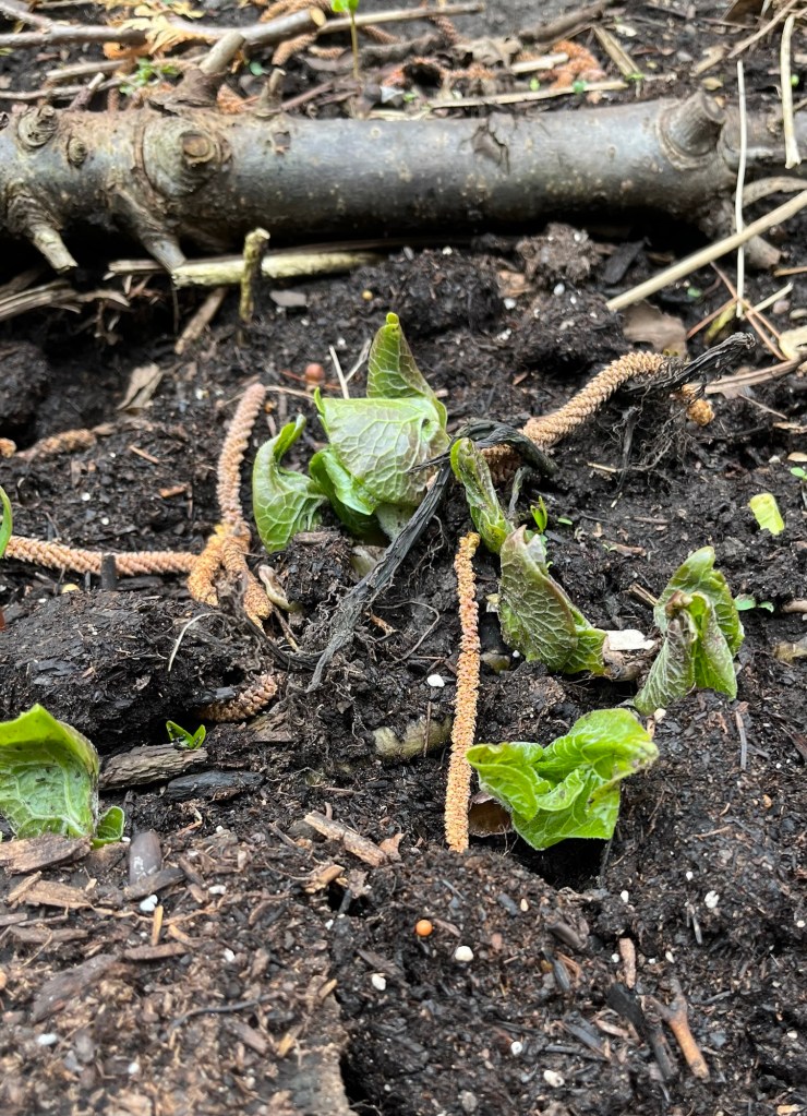We keep getting a taste of better weather, then no. Yesterday had it all, rain, snow, sun, wind. I’m out there daily poking around. Great to see last year’s new acquisitions are coming back.