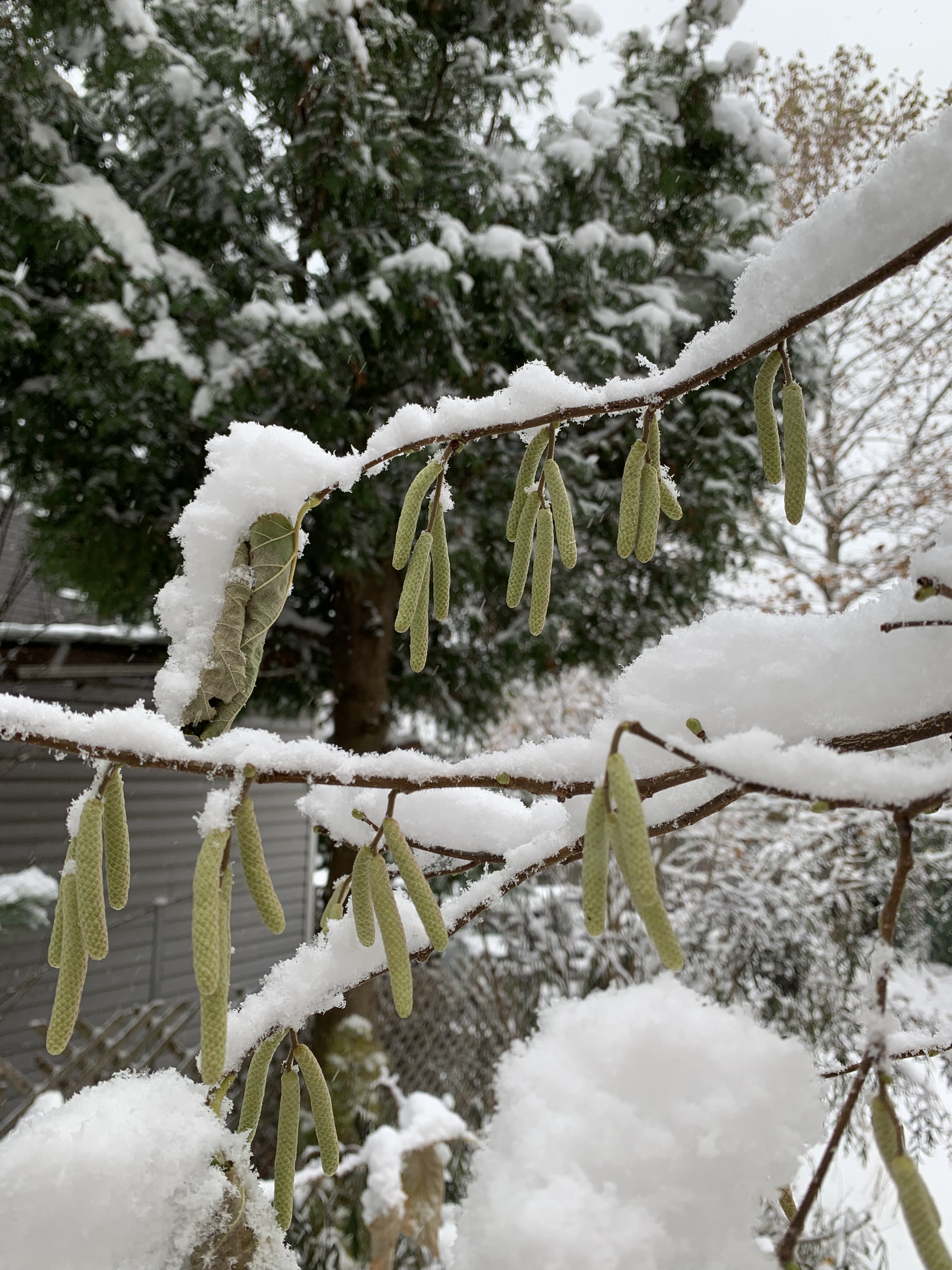 It’s a real winter wonderland. About 3cm. The catkins on the hazelnuts are looking good.
